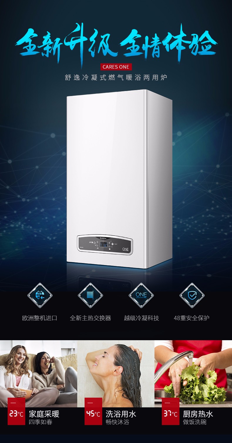 革新的ONE 系列冷凝式燃氣采暖熱水爐,出色性能,為每一個中國家庭提供高效專業(yè)的供暖和熱水解決方案。
